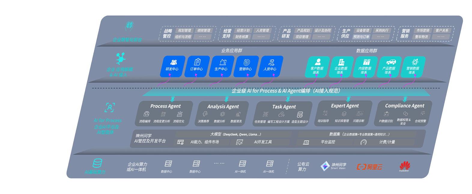 端到端的一站式AI工作空间深度融合了从企业战略规划到日常经营的全流程业务板块,,定向解决车企内部领域多、、、部门多、、、链条长、、场景碎片化等难题,,支持车企快速构建以AI为核心的生产力写作体系,,,实现任务执行与AI能力的无缝集成与交互