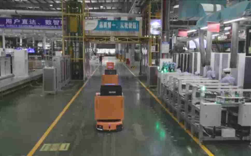 为车载冰箱物流配送打造的智能解决方案,,,包含产中物流通过潜伏举升AMR搬运至线边,,产后成品物流智能仓储,,流程包含产中物流智能齐套入库,,线边安灯叫料AMR智能配送至线边,,成品入库、、、出库,,通过无人堆高车机器人,,,智能仓储管理替代人工作业管理,,实现更高存储、、、更高效率、、、、更具柔性化的解决方案。。。。